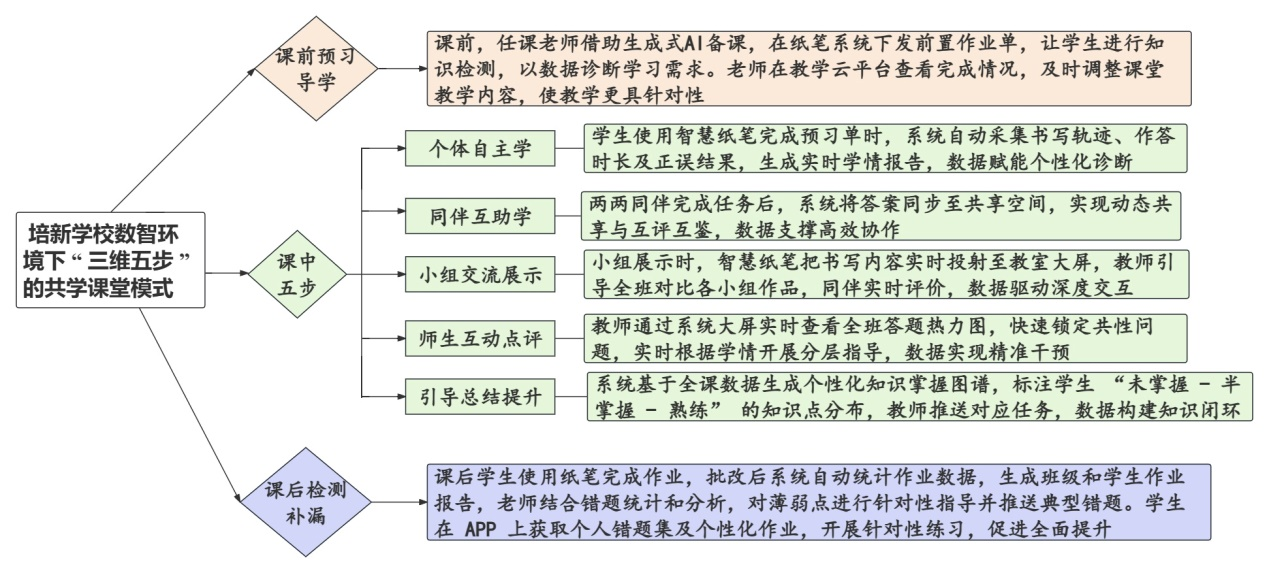 培新学校数智环境下的“三维五步”共学课堂模式图