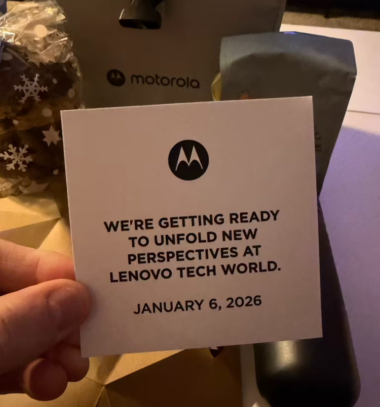 可能联思亦然见到了moto在折叠手机限制如斯吃香,疑似联想推出moto大折叠,近日国外媒体晒出了摩托罗拉送出将在2026年1月6日召开联思科技宇宙四肢的邀请函以及礼包。