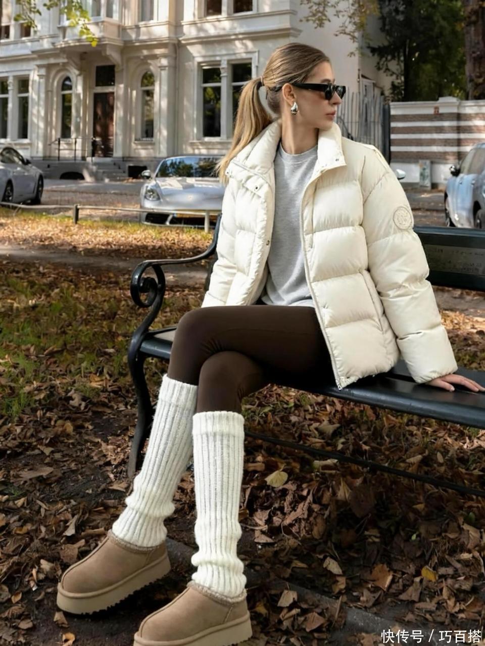 思要省时节力,不错径直安排高筒靴,也不错选拔搭配中筒雪地靴,心爱档次感的姐妹,选拔堆堆袜+低口雪地棉后果最好,像博主相似用高筒袜搭配剖析鞋、毛绒拖鞋的穿法,也能赚足回头率,裤腿口被袜子或鞋子包裹,干净利落。