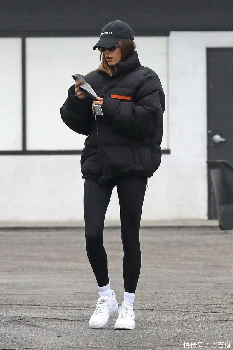 除此以外,环球还不错选拔其他任何神志的羽绒服与之搭配,选拔玄色瑜伽裤搭配玄色羽绒服干净利落又显瘦,用白色中筒袜和白色板鞋丰富和提亮举座色彩,好意思不雅实用。