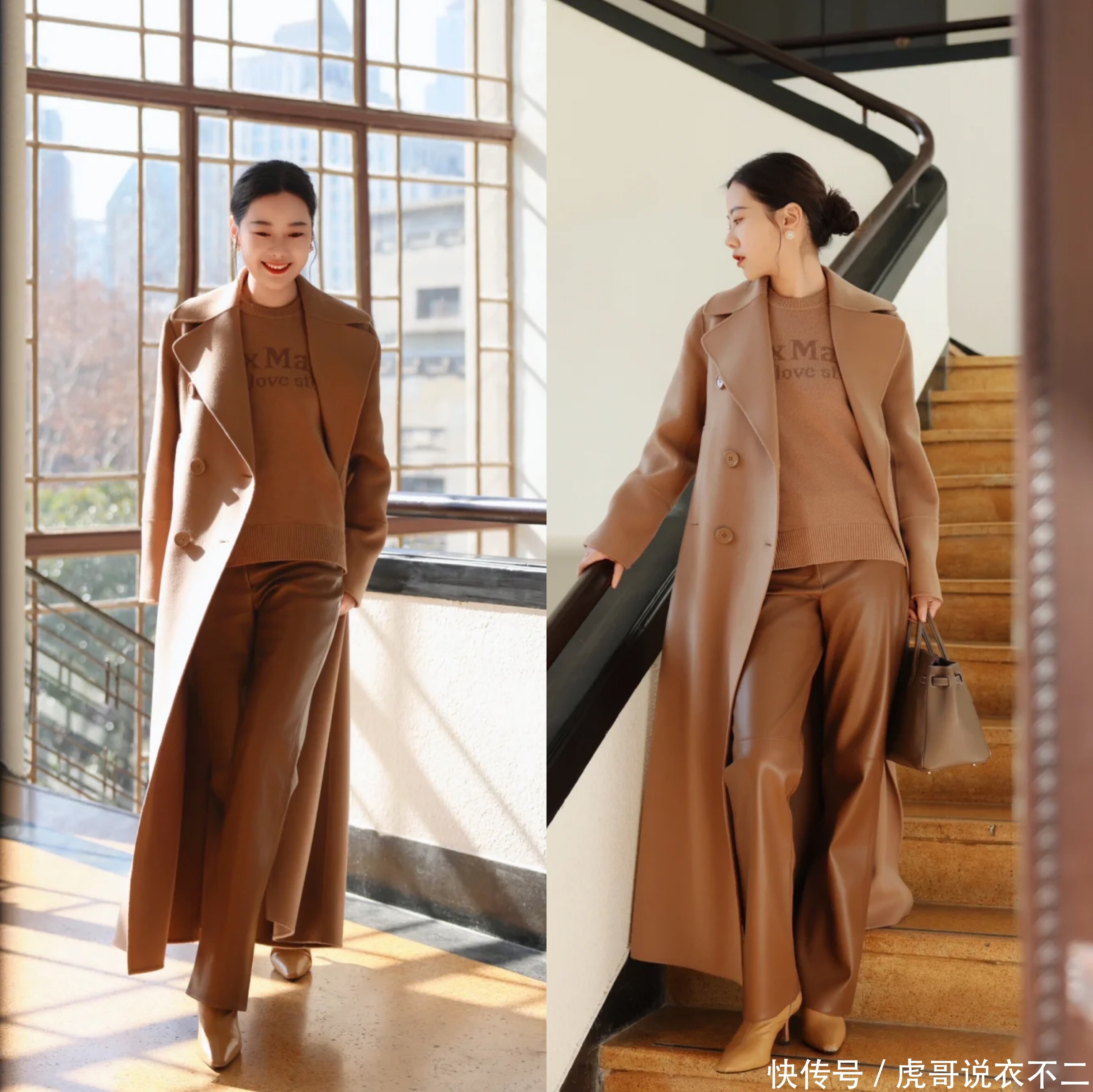 同色系搭配是一种非常从简而又高档的先锋划定,它概况让举座造型愈加和谐调解,展现出一种低调的谋害感。收受与大衣神采相近或同样神采的内搭和下装,概况营造出一种延迟感,让身段看起来愈加修长。